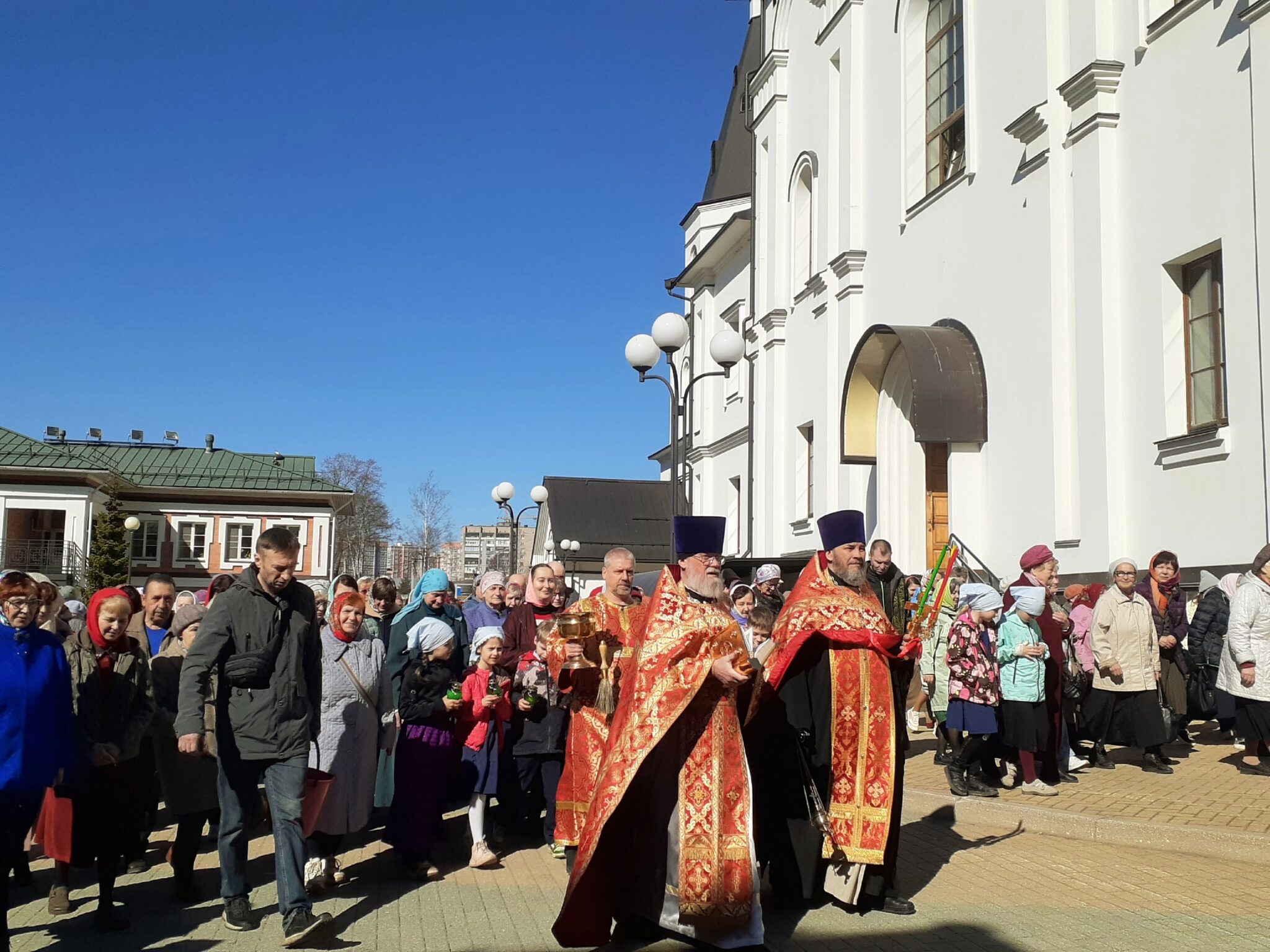 После Литургии вокруг кафедрального собора под праздничный колокольный звон состоялся крестный ход. Молитвенное шествие возглавили протоиерей Владимир Богданчиков и протоиерей Алексий Алин.