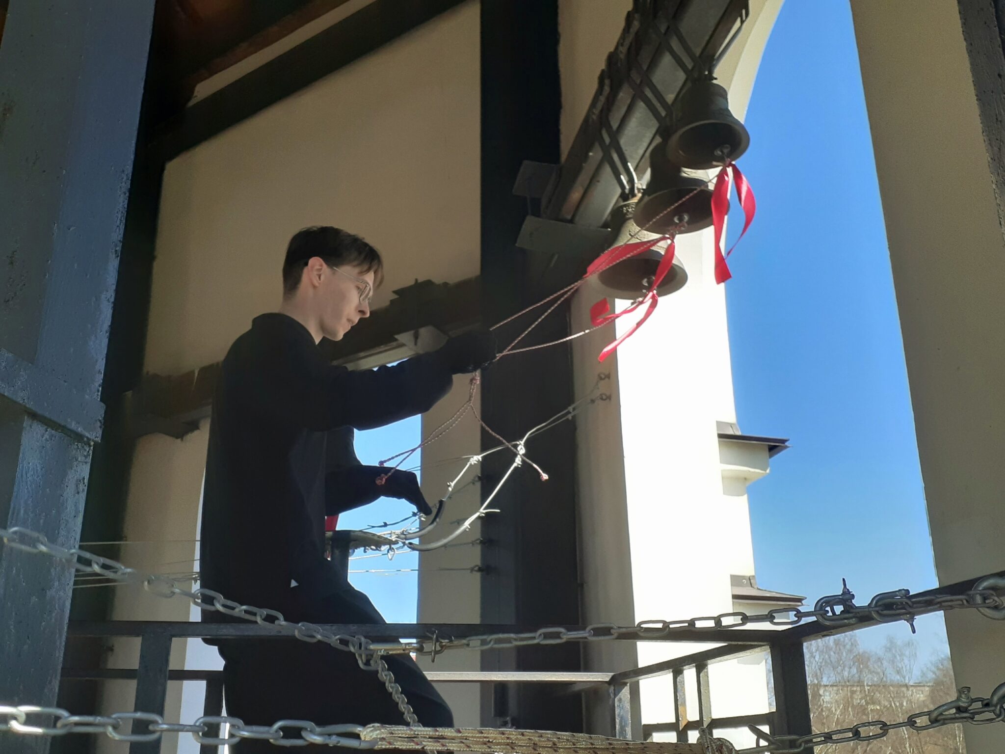 Колокольный звон до и после богослужения, а также во время крестного хода прозвучал в исполнении звонаря Алексия Захарчука.